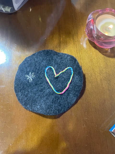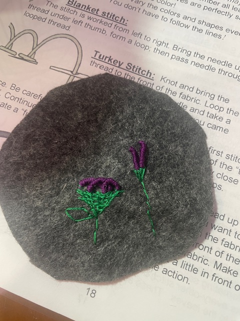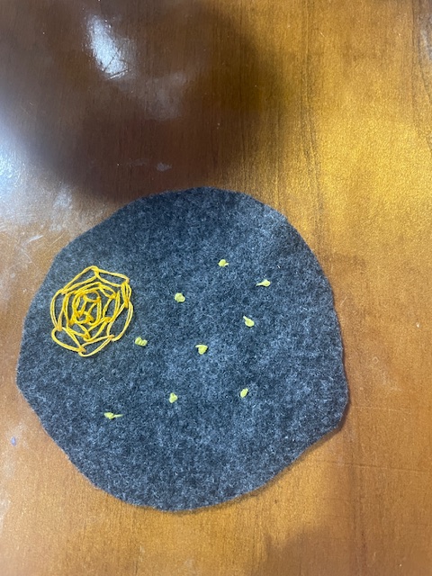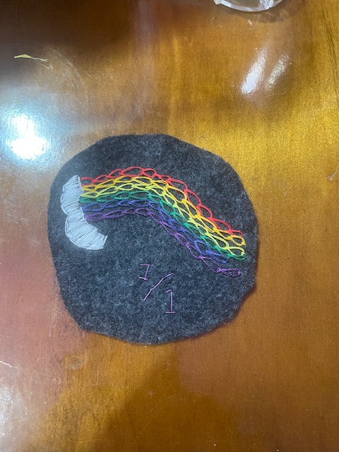 I have managed to keep this up for an entire week so far, which is better than my usual efforts. I hope that this momentum keeps up throughout the year. Each day I try to explore a different technique or using the stitches in a new way. The first is the rainbow, the second is the purple flower and the third is the moon and stars. Each of these use the same type of stitch as the center with other stitches such as satin stitch or french knots to accent. This has been so much fun.