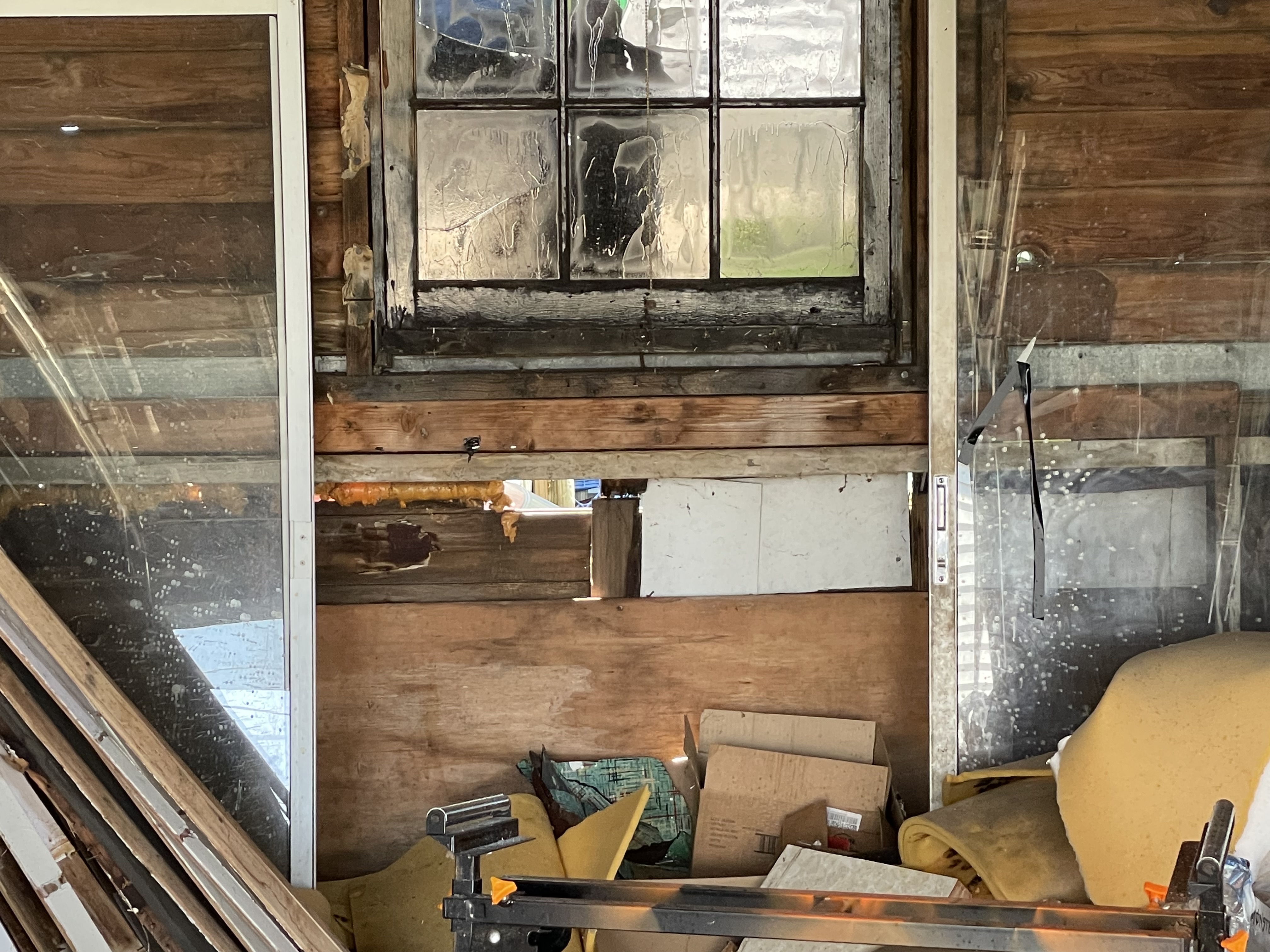 I am certainly going to have to do more sanding and possibly more filling. I cannot wait to get this ready for the winter. Speaking of prep for the winter, I’m still working on my garage. I’m going to show you the shame of my garage window and the hole I need to fill in.