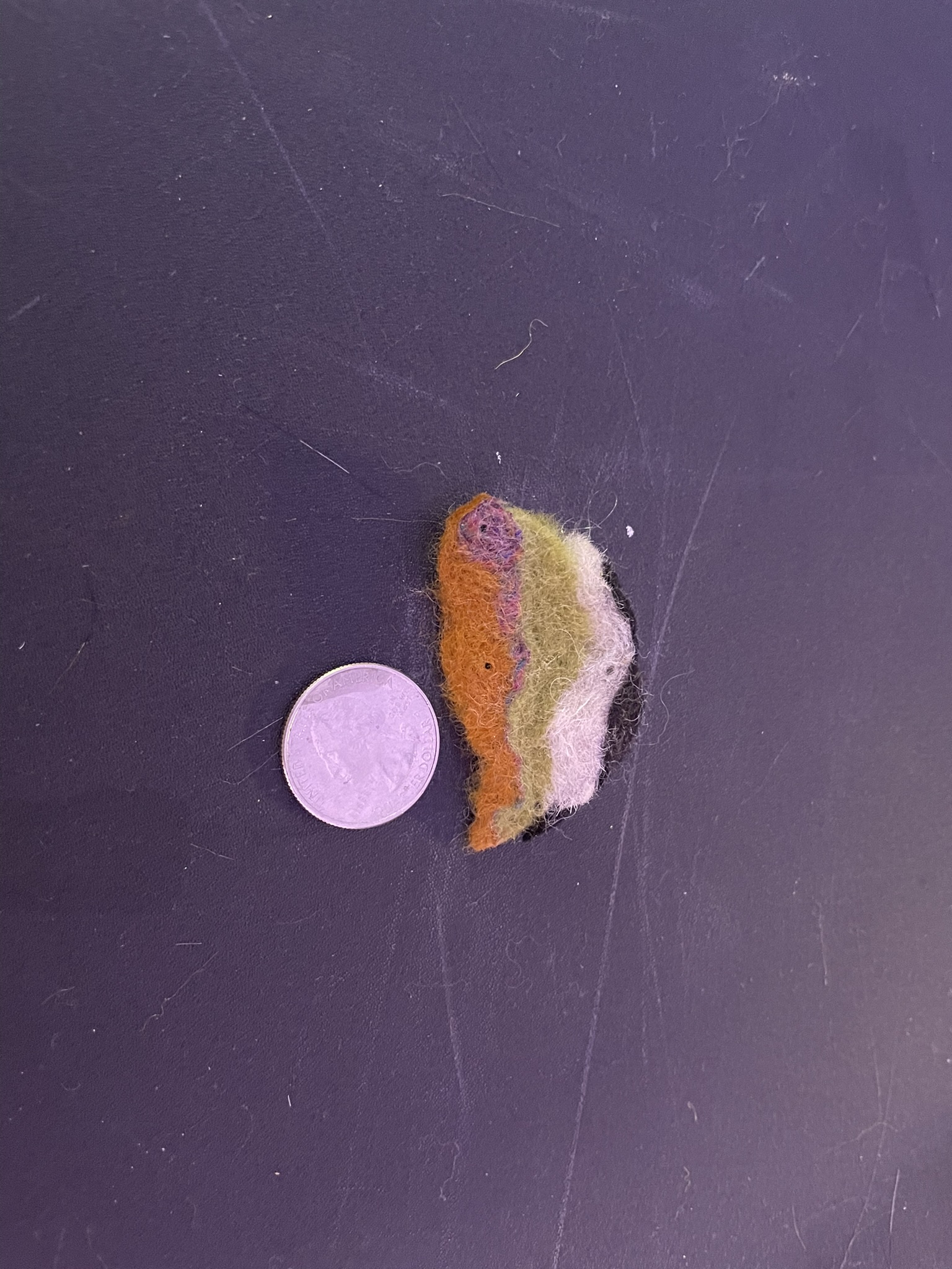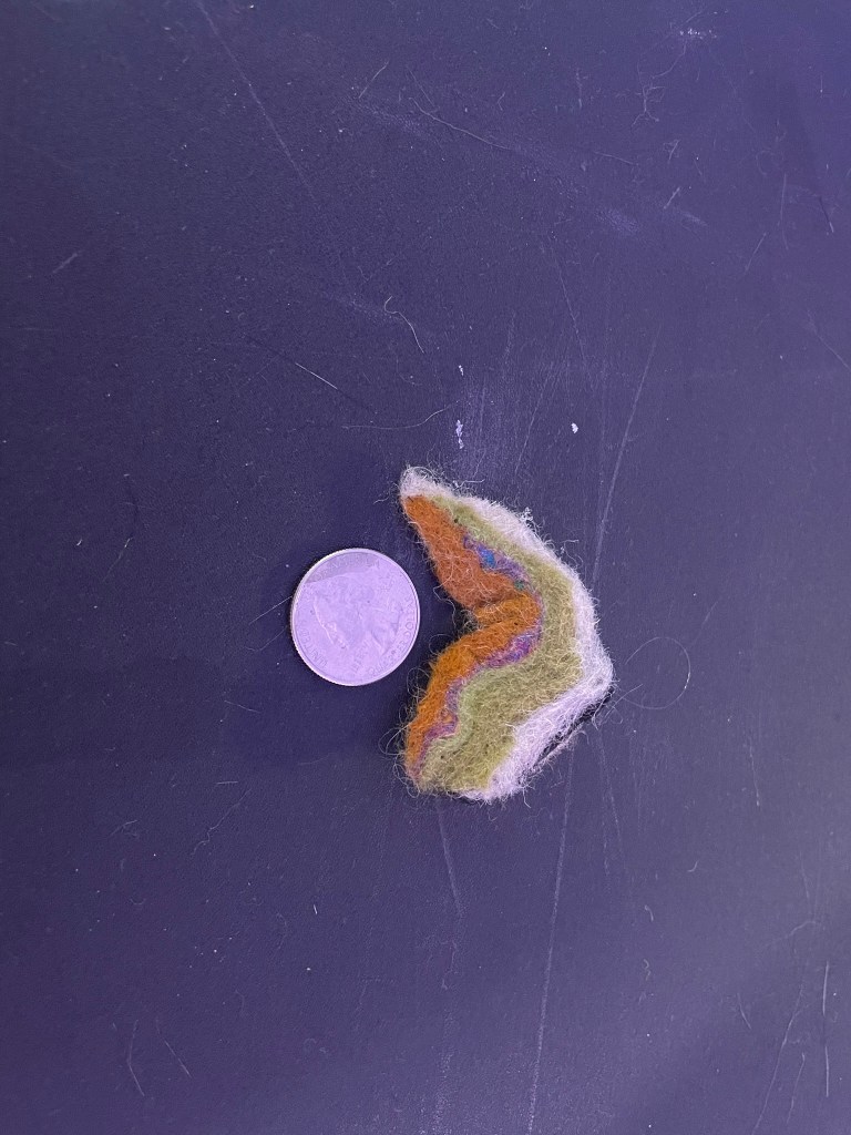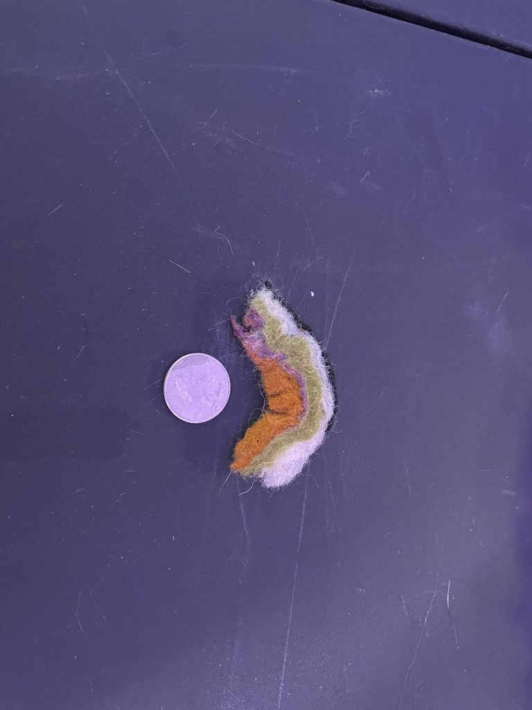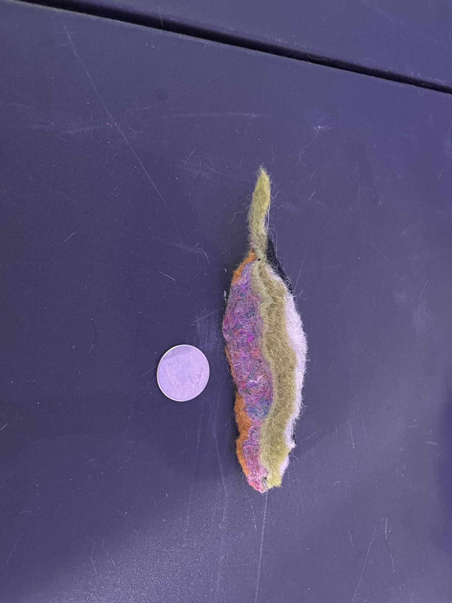 I am hoping to sell them, partially to purchase more material, partially to say that I’ve made a sale in the first year of my etsy shop being open, and partially to help pay my bills. Oh well, weather I do or do not I had fun making them, and I know that the pattern is easy enough for us to make at Teen Crafting in 2024 as well as Adult Crafting. The plushies are not all that I made, I had a ton of fun experimenting with my Finishing Sander and wet felting.