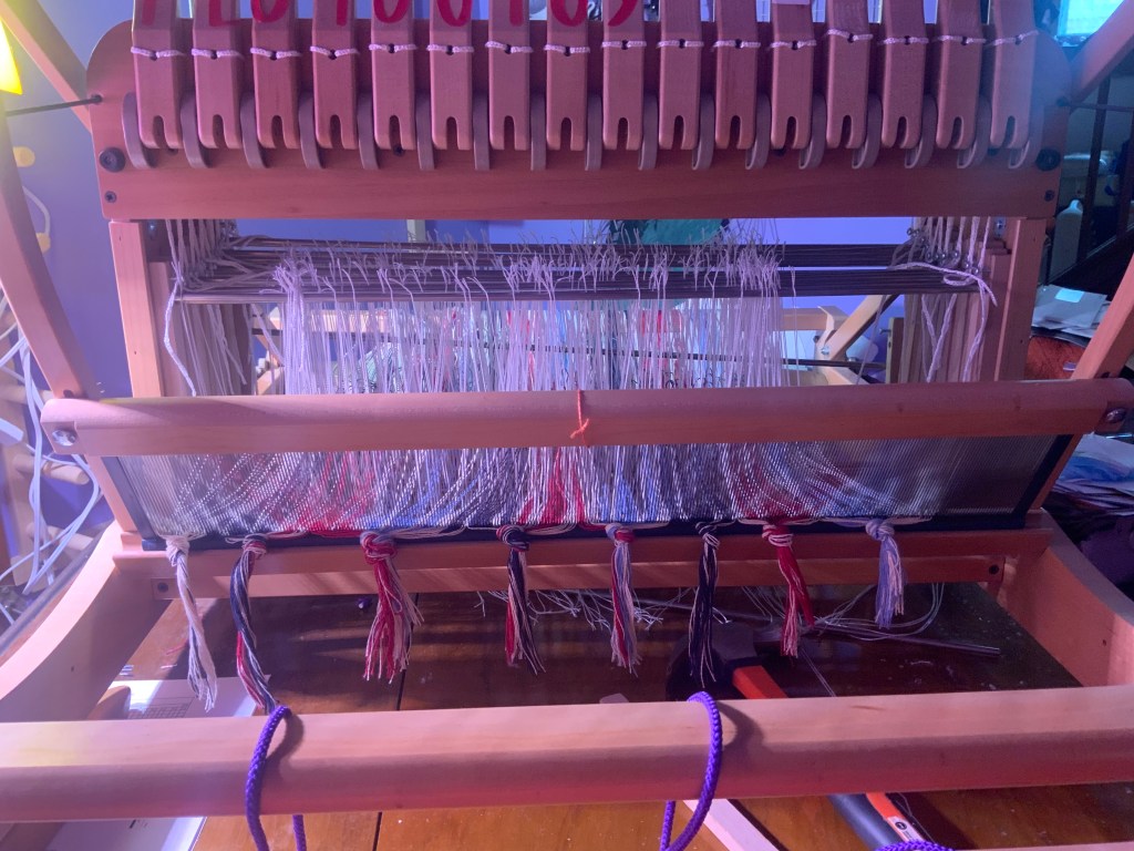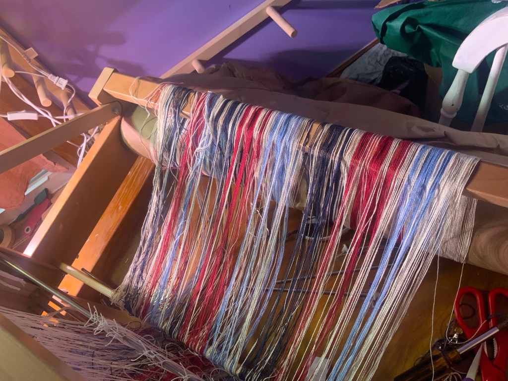 There is one more aspect to this saga and that is the paper that I used to wind the back warp. Since it was not exactly the same size as the back warp beam, it wound up crinkling and wrinkling. Those crinkles and wrinkles cause the warped be held at a different tension which completely messed up my front tension. I should’ve seen this coming however, I did not. I am still debating different ways to potentially resolve this issue. The back warp reel is actually quite wide, though it isn’t 36 inches wide which is what I think the paper is.